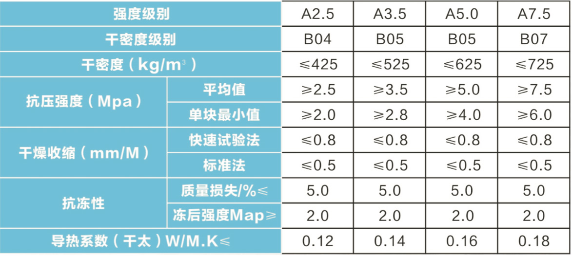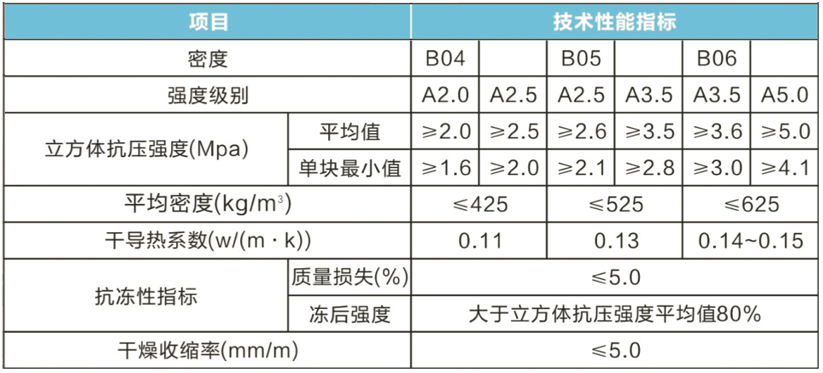 加气混凝土砌块技术指标