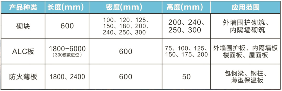 加气混凝土产品的常用规格